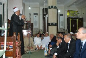 بدء الإحتفال بتلاوة أيات من الذكر الحكيم ودرس دينى لمدير مديرية الأوقاف وإبتهالات دينية .