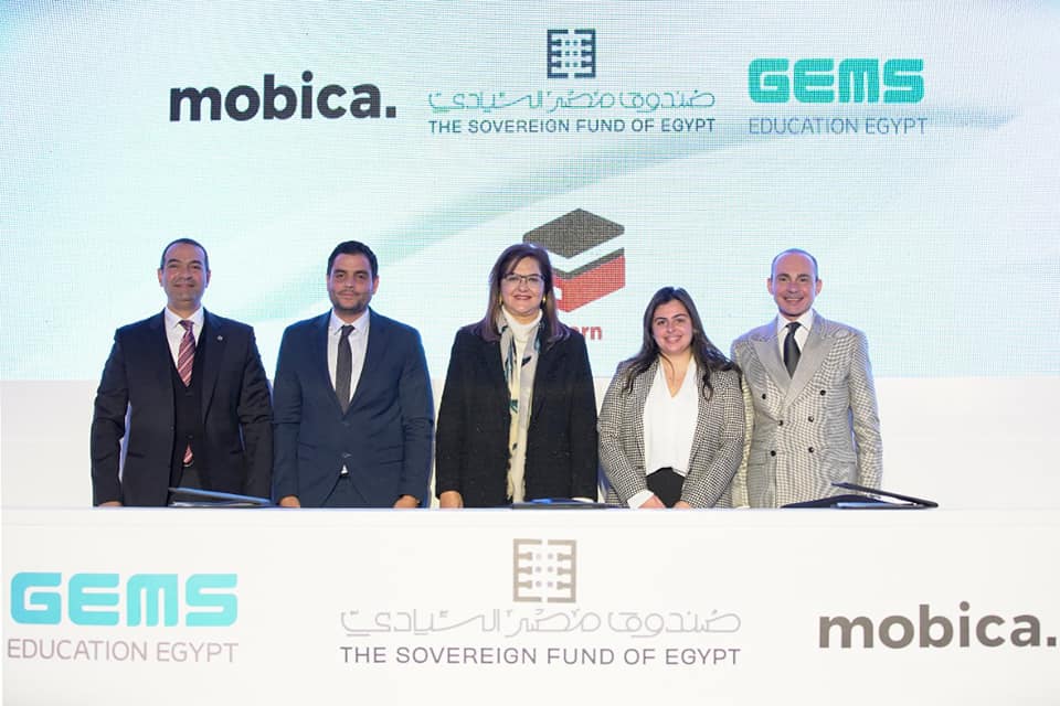 شهدت هالة السعيد وزيرة التخطيط والتنمية الاقتصادية ورئيس مجلس إدارة صندوق مصر السيادي، وضع حجر الأساس لبناء مدرستين على أرض القرية الكونية، بالشراكة بين صندوق مصر السيادي، وشركة موبيكا، وذلك في إطار خطة الصندوق لاستغلال الأصول المنقولة، ودعم التعليم إلى جانب تحقيق عوائد جيدة على الاستثمار، وكذلك وفقًا لنموذج الشراكة المتفق عليه حيث سيقوم صندوق مصر السيادي بالشراكة مع موبيكا بتأسيس الشركة، على أن تقوم GEMS Egypt بإدارة المدرستين نظير رسوم إدارية.