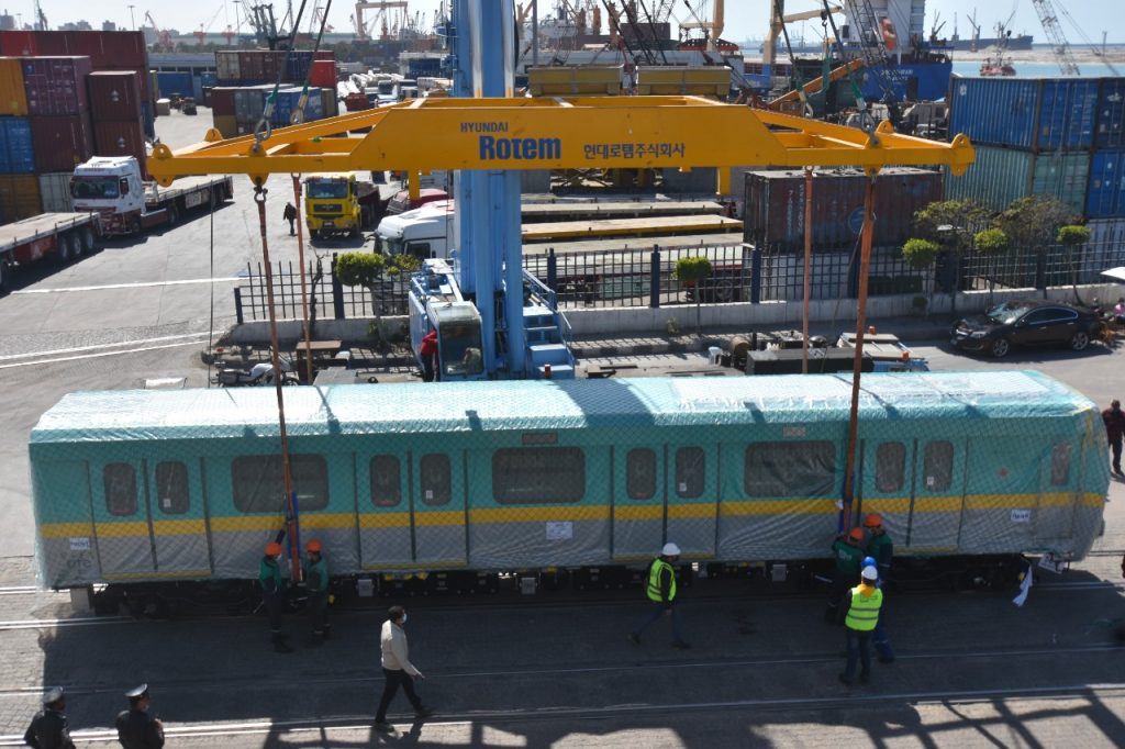 أعلنت وزارة النقل وصول القطار المكيف السابع لمترو الأنفاق إلى ميناء الإسكندرية بالإضافة الى وصول مكونات القطار الأول من الـ 10 قطارات التى سيتم تجميعهم محلياً بشركة سيماف المصرية من خلال الدعم الفني لشركة هيونداي وتدعيمها للتصنيع المحلي طبقاً للتعاقد معها لتعظيم الدور المحلي والإستفادة من الخبرات المحلية وحيث إشتملت المكونات على (هياكل العربات – المعدات – الكراسي – جميع مكونات وأجزاء العربة الداخلية).