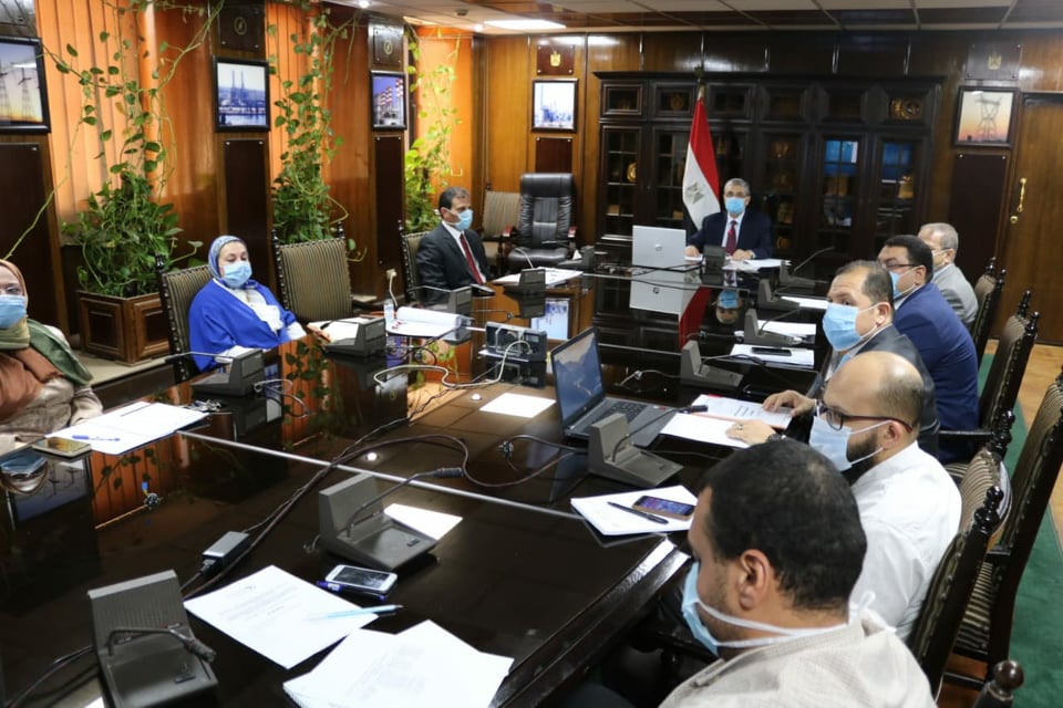 كما تم الإشارة إلى التدابير الصحية الوقائية وإجراءات النظافة والتعقيم فى جميع مبانى قطاع الكهرباء.