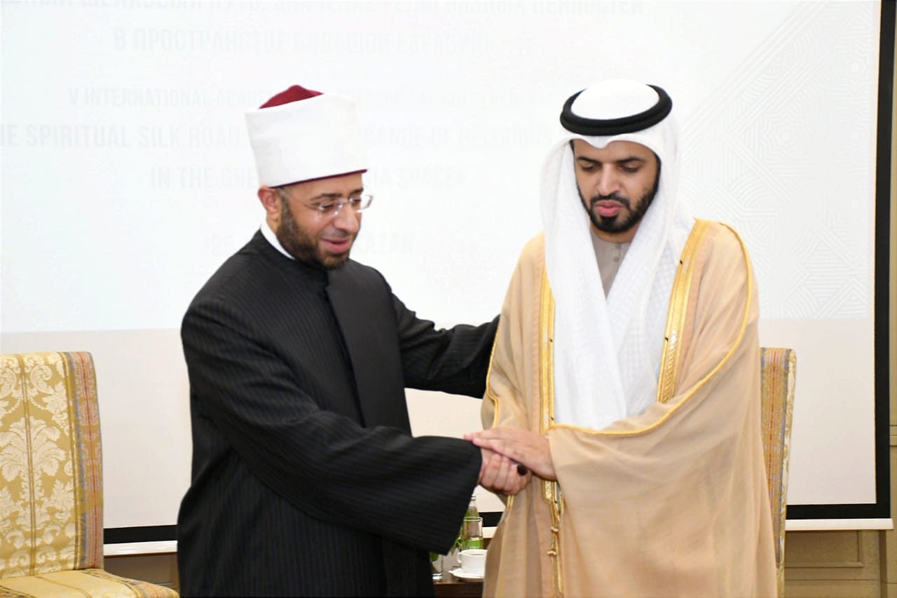 التقى أسامة السيد الأزهري وزير الأوقاف اليوم الخميس عمر حبتور الدرعي رئيس الهيئة العامة للشؤون الإسلامية والأوقاف والزكاة بدولة الإمارات العربية المتحدة، يأتي ذلك على هامش مشاركة وزير الأوقاف في أعمال المؤتمر الدولي الخامس “طريق الحرير الروحي .. أهمية القيم الدينية في منطقة أوراسيا الكبرى” والذي تنظمه الإدارة الدينية لمسلمي روسيا الاتحادية بمدينة قازان الروسية عاصمة جمهورية تتارستان بالتعاون مع جامعة محمد بن زايد للعلوم الإنسانية ومع مفتي تتارستان، في الفترة من 25 – 26 يوليو 2024م.