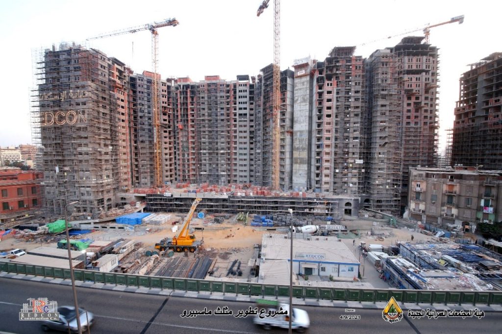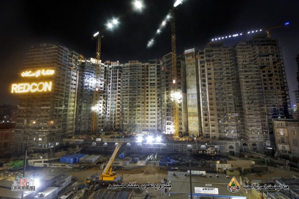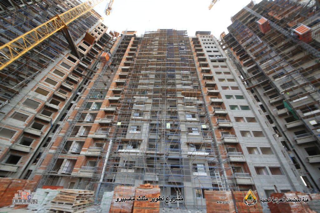 وأوضح وزير الإسكان، أنه تم الانتهاء من أعمال الهيكل الخرسانى، وجارٍ تنفيذ أعمال التشطيبات الداخلية والخارجية لمشروع الأبراج بمنطقة مثلث ماسبيرو، مشيراً إلى أن المشروع يتكون من دور بدروم (جراج سفلى) بمسطح 19220 م2، سعة 353 سيارة، ودور أرضي (تجاري) بمسطح 16970 م2، ودور أول (جراج علوى) بمسطح 15800 م2، سعة 280 سيارة، وبرجين للسكن البديل لمن وافق من سكان منطقة “مثلث ماسبيرو”، على خيار العودة إليها بعد تطويرها، ويتكون كل منهما من 18 دورا سكنيا بإجمالى 468 وحدة سكنية، وبرج ثالث بارتفاع 23 دورا سكنيا بإجمالي 134 وحدة سكنية، وبرج رابع (برج إدارى) يتكون من بدروم + دور أرضى تجارى، و15 دورا متكررا.