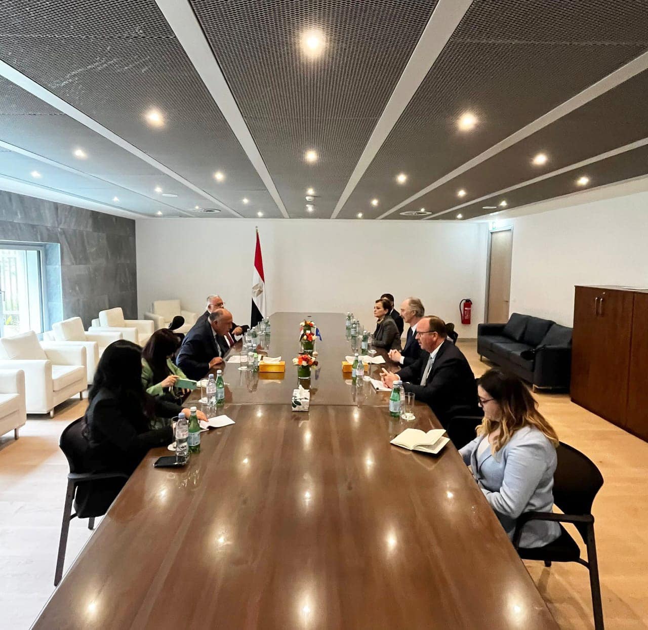 وصرح المُتحدث الرسمي باسم وزارة الخارجية السفير أحمد أبو زيد، بأن اللقاء شهد استمرار الحوار بين مصر والأمم المتحدة حول سبل حل الأزمة السورية بشكل متدرج وفق مقاربة خطوة مقابل خطوة على نحو ما تناولته اجتماعات جدة وعمان والقمة العربية الأخيرة بجدة وبما يتوافق مع قرار مجلس الأمن رقم 2254.