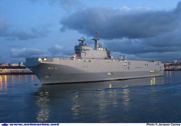 من طراز “ميسترال” في احتفالية بمدينة تولوز يرفع خلالها العلم المصري على حاملة الطائرات إيذانا بدخولها الخدمة.