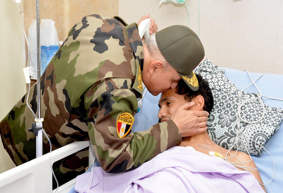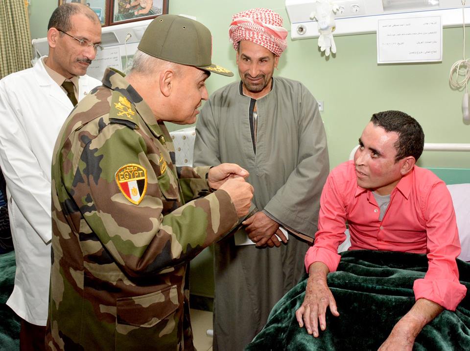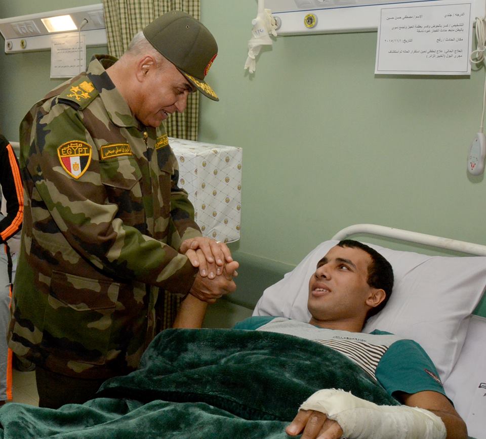 قام الفريق أول صدقى صبحى القائد العام للقوات المسلحة وزير الدفاع والإنتاج الحربى يرافقه عدد من كبار قادة القوات المسلحة بزيارة عدد من المصابين من أبطال القوات المسلحة الذين أصيبوا أثناء أدائهم لمهامهم في التصدي للإرهاب والقضاء على البؤر الإرهابية في سيناء, ويخضعون للعلاج حاليا بالمجمع الطبي للقوات المسلحة بالمعادي .