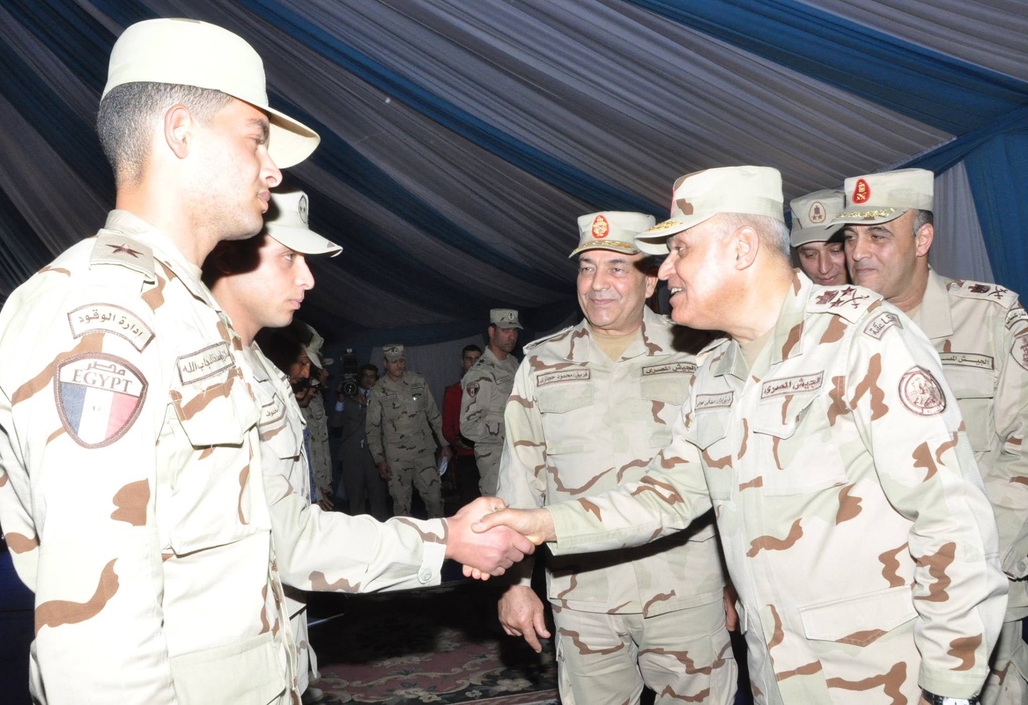 حضر اللقاء الفريق / محمود حجازى رئيس أركان حرب القوات المسلحة وقادة الأفرع الرئيسية وعدد من كبار قادة القوات المسلحة .