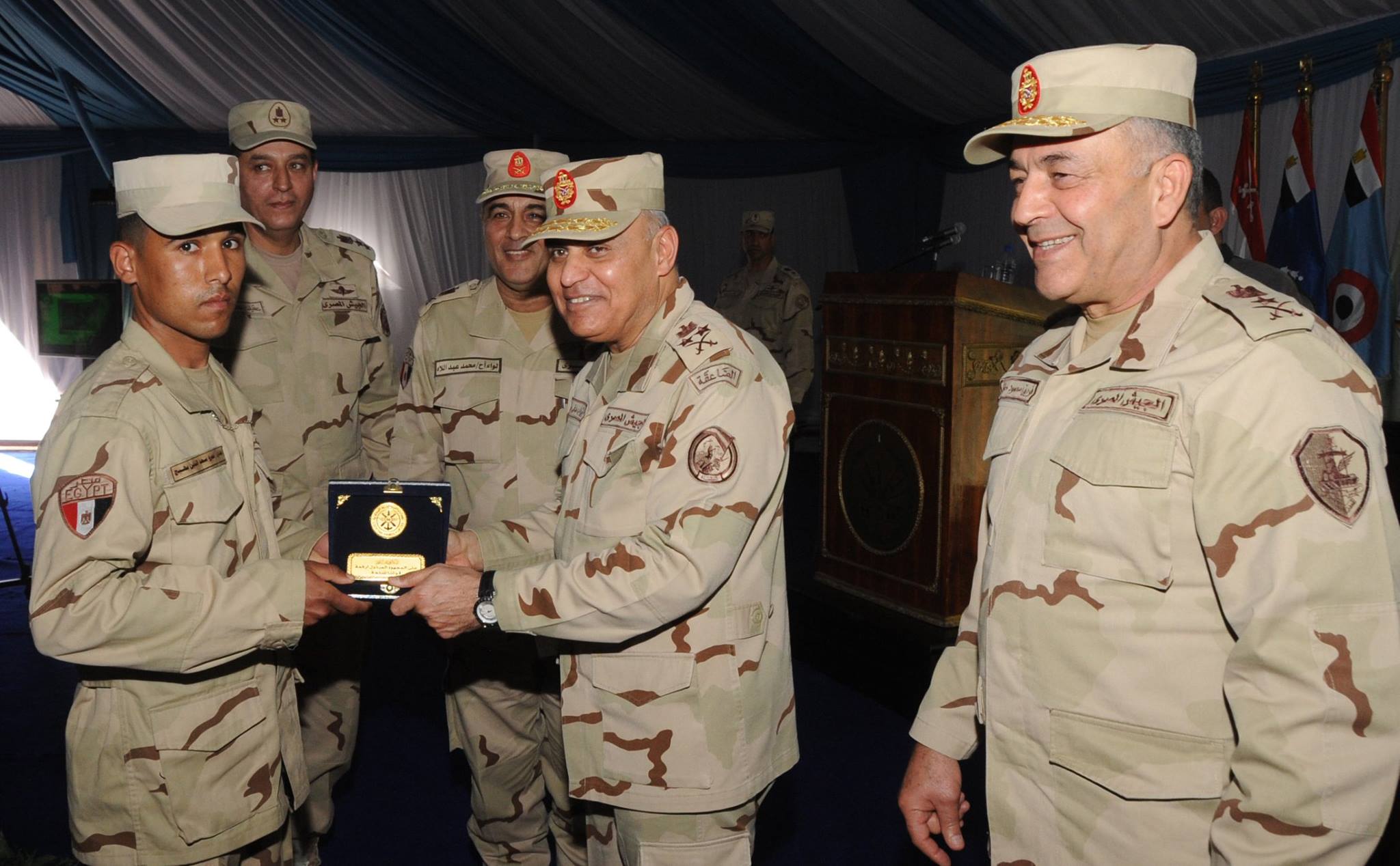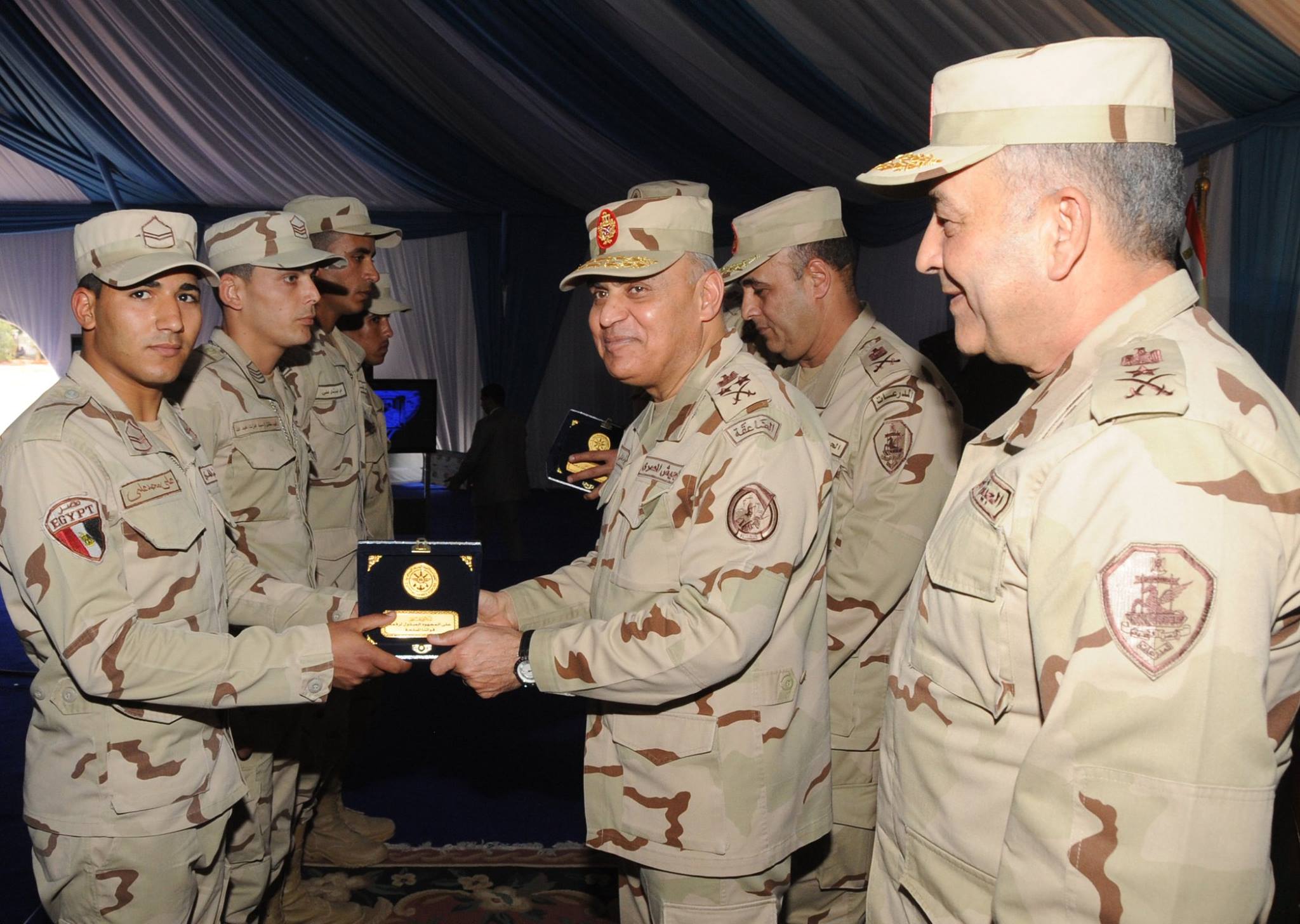 وقام بتكريم المتميزين من الضباط وضباط الصف والصناع العسكريين والجنود تقديراً لجهودهم وأدائهم لمهامهم بتفانى وإخلاص فى سبيل إقتلاع جذور الإرهاب من سيناء .