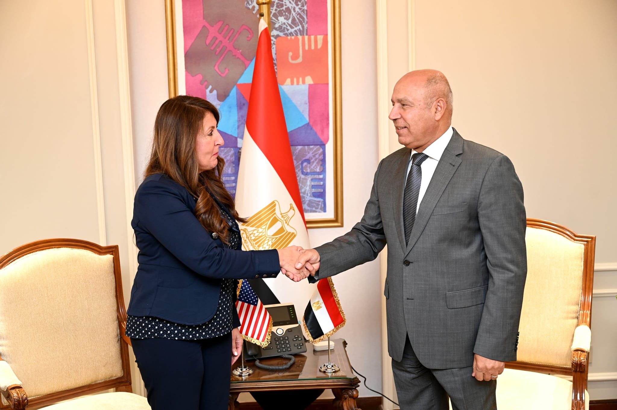وقال الوزير، خلال لقائه مع سفيرة الولايات المتحدة الأمريكية بالقاهرة هيرو مصطفى، إن اللقاء تناول استعراض فرص تعزيز التعاون بين البلدين في قطاعي الصناعة والنقل خلال المرحلة المقبلة، مؤكدا أن وزارة النقل لها سجل حافل من التعاون مع الشركات الأمريكية في مجال جرارات السكك الحديدية، حيث سبق وقامت شركة جنرال إلكتريك الأمريكية (وابتك حاليا) بتوريد 210 جرارات سكة حديد جديدة وإعادة تأهيل 81 جرارا من الأسطول الحالي بما ساهم في تدعيم قوة الجر بالسكة الحديد وتحسين الخدمات المقدمة لجمهور الركاب وانتظام المواعيد وكذلك التعاون مع شركة PRL في مجال صيانة جرارات السكة الحديد.