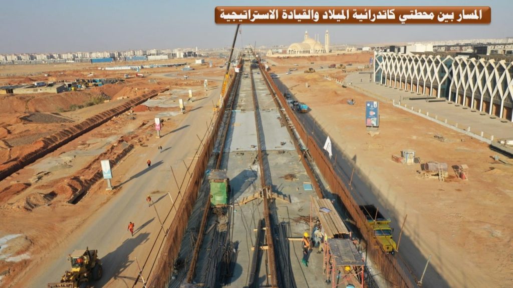 كما تفقد الوزير مواقع تنفيذ وإنشاء المحطات وكباري المسار وورشة تخزين القطارات واطلع على معدلات التنفيذ والتي بلغت 19.5% للأعمال الاعتيادية للمرحلة حيث تم الانتهاء من أعمال الخوازيق والقواعد المسلحة والأعمدة لمحطة كاتدرائية الميلاد (محطة علوية) وتم الانتهاء من تنفيذ أعمال الأساسات لمحطة القيادة الاستراتيجية (محطة سطحية) وجارى تنفيذ أعمال المباني بها، كما تم الانتهاء من أعمال الخوازيق لكوبري محطة العاصمة المركزية، ويجري حاليا تنفيذ الأعمال الإنشائية (خوازيق – أعمدة – كمرات) بكباري المسار كما تم نهو أعمال الجسات واختبارات التربة لورشة تخزين القطارات بنهاية المسار والتي سيتم تنفيذها على مساحة حوالي 62 فدان.