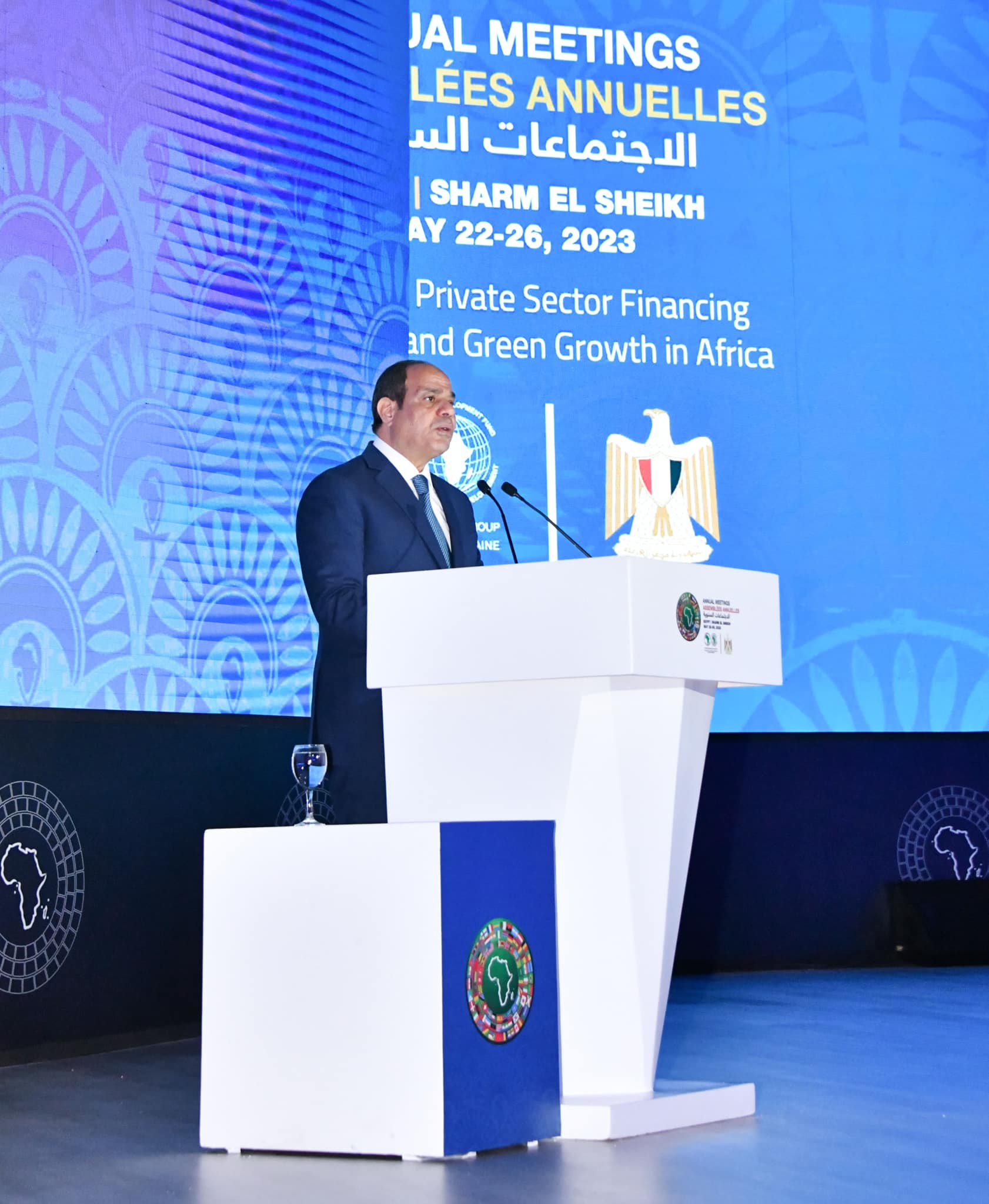 افتتح الرئيس عبد الفتاح السيسي، اليوم الثلاثاء، الاجتماعات السنوية لبنك التنمية الأفريقي 2023، والتي تستضيفها مصر ممثلة في البنك المركزي المصري بمدينة شرم الشيخ خلال الفترة من 22 إلى 26 مايو الجاري، تحت شعار “تعبئة تمويل القطاع الخاص من أجل المناخ والنمو الأخضر في أفريقيا”.