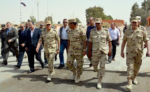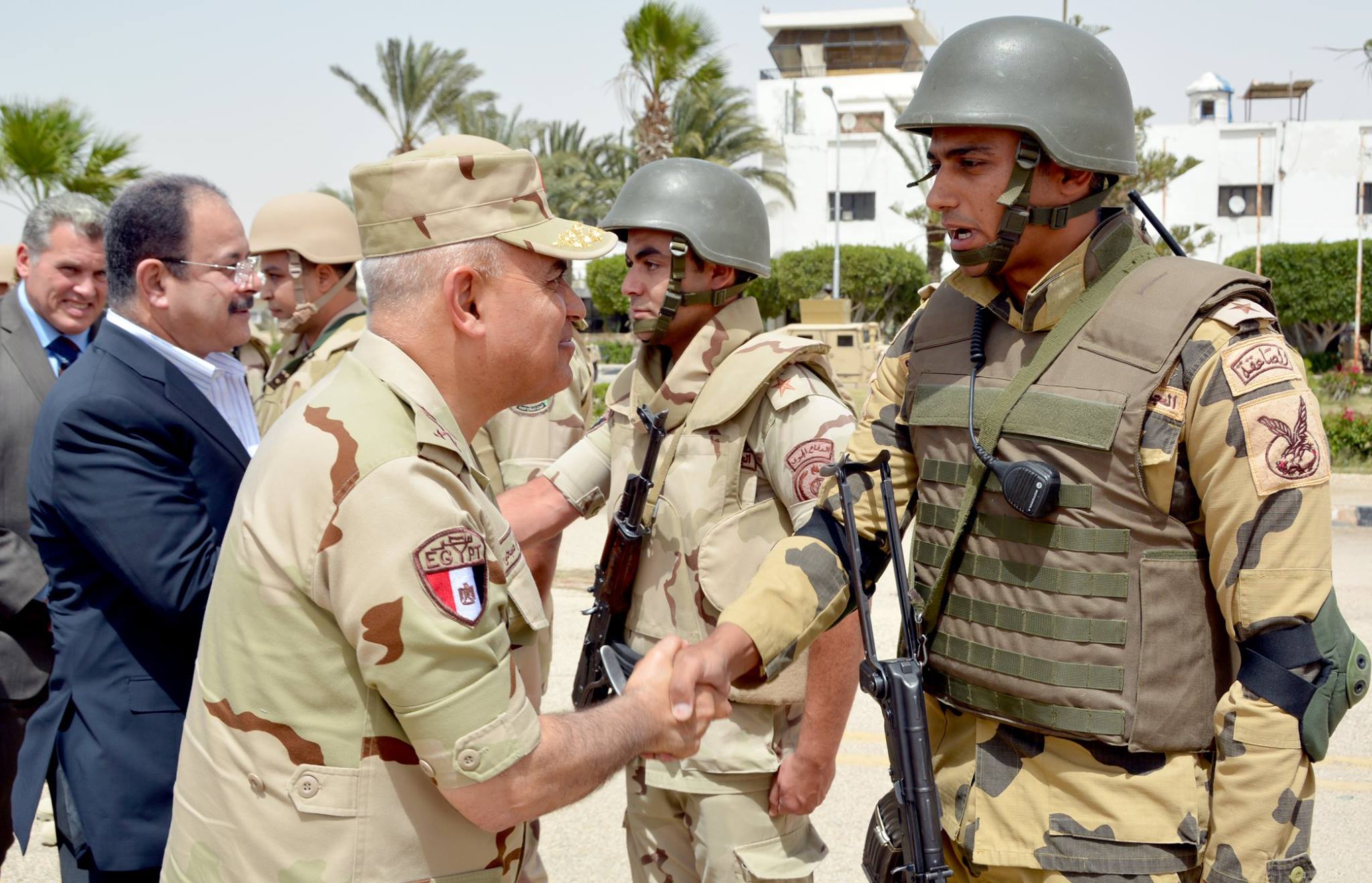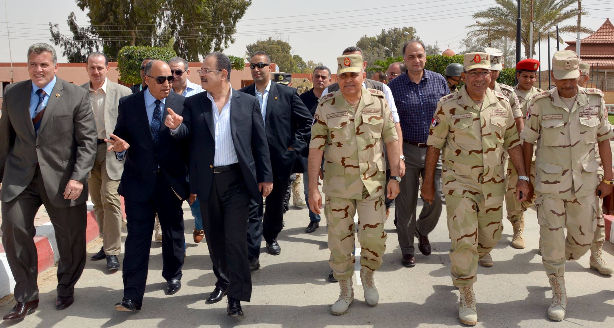 قام الفريق أول / صدقى صبحى القائـد العـام للقـوات المسلحـة وزيـر الدفـاع والإنتـاج الحربى يرافقه اللواء / مجدى عبد الغفار وزير الداخلية بتفقد عناصر قوات إنفاذ القانون من أبطال القوات المسلحة والشرطة المتمركزة بشمال سيناء ، والتى نجحت خلال الفترة الماضية فى فرض السيطرة الأمنية الكاملة بمناطق مكافحة النشاط الإرهابى ، وتحقيق العديد من الضربات المتلاحقة للقضاء على العناصر التكفيرية والأوكار والبؤر الإرهابية التى تتحصن بها تلك العناصر .