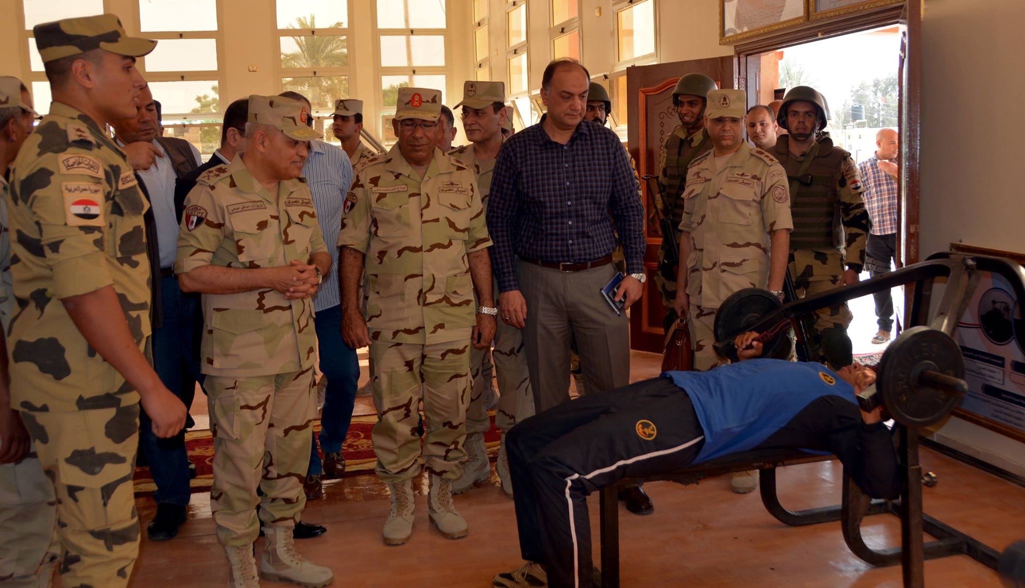 كما قام القائد العام بالمرور على الوحدات الإدارية بقطاع تأمين شمال سيناء وإفتتاح الصالة الرياضية التى تضم عدد من الأجهزة الرياضية والتى تساعد على رفع الكفاءة البدنية ، كما إفتتح القائد العام عدد من الملاعب الرياضية وكذا إفتتاح المسجد بعد تطويره وتوسعته .