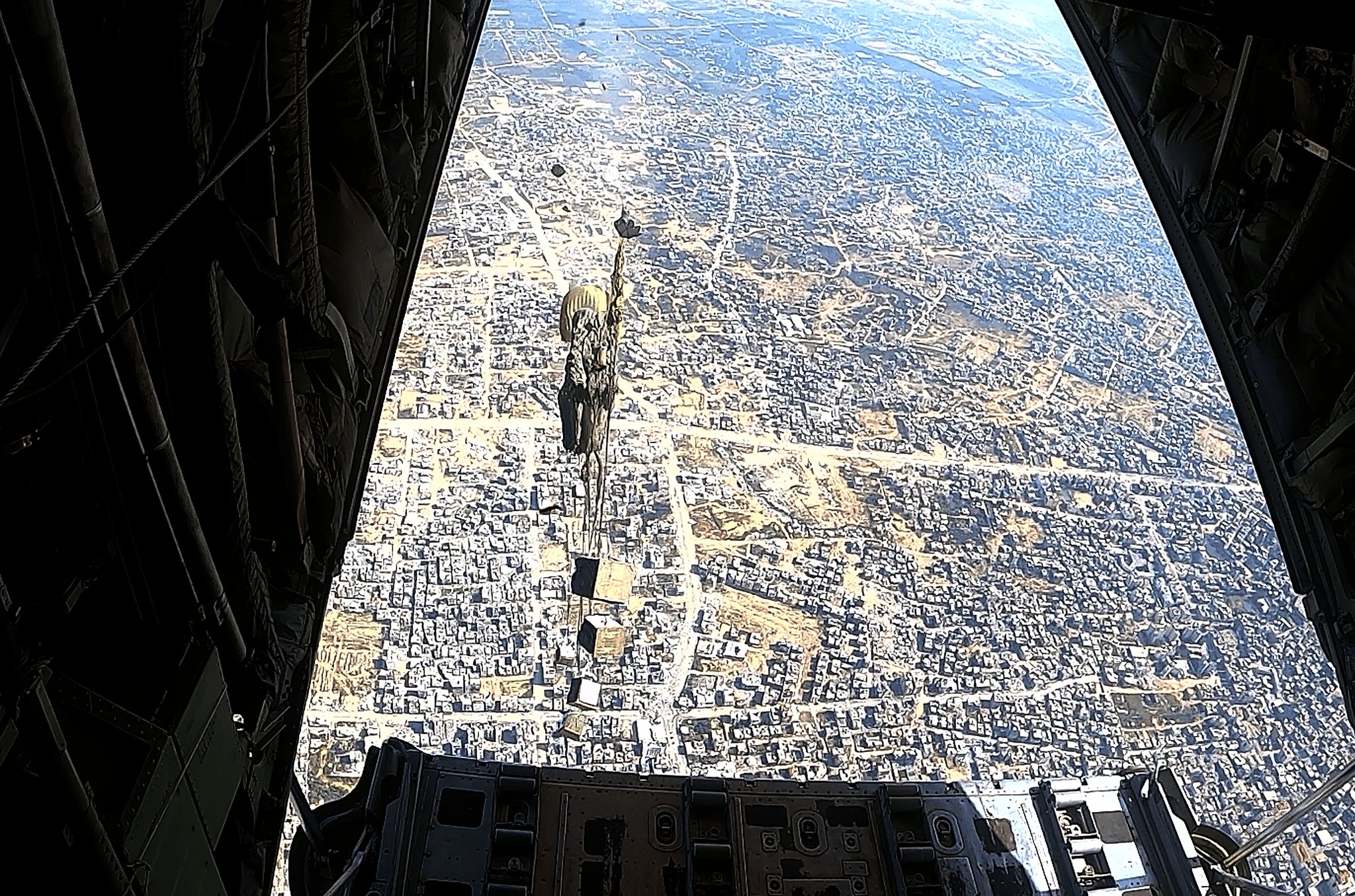 تشارك عناصر من القوات الجوية المصرية فى التحالف الدولى لإسقاط المساعدات على غزة من المملكة الأردنية الهاشمية، وذلك بالتعاون مع نظيراتها من القوات الجوية الأردنية والأمريكية والفرنسية والهولندية والبلجيكية لتنفيذ أعمال الإسقاط الجوى لأطنان من المساعدات الإنسانية والإغاثية العاجلة بالمناطق المتضررة بشمال قطاع غزة.