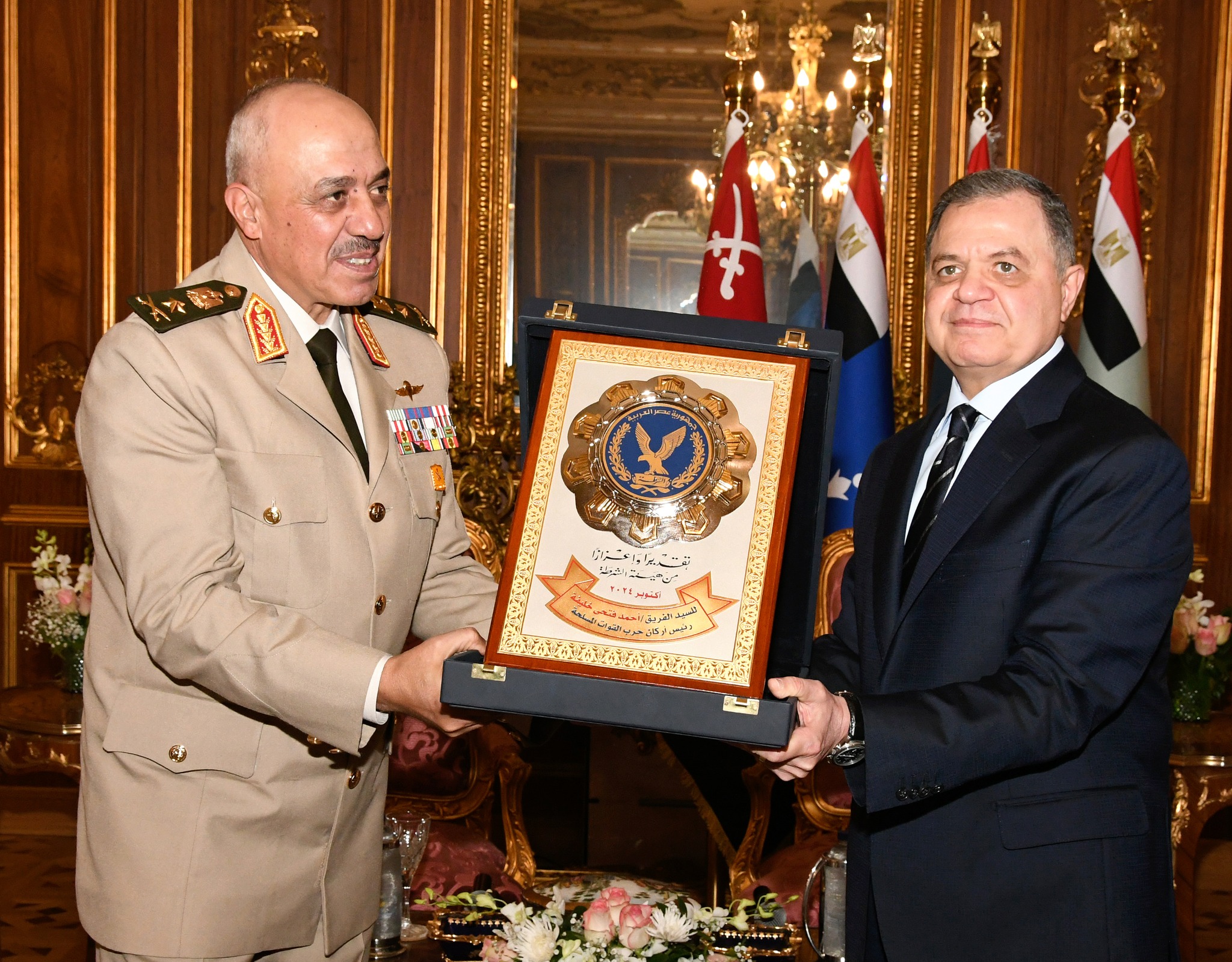 وفى نهاية اللقاء، قام اللواء محمود توفيق وزير الداخلية بإهداء الفريق أول عبد المجيد صقر القائد العام للقوات المسلحة وزير الدفاع والإنتاج الحربى والفريق أحمد خليفة رئيس أركان حرب القوات المسلحة درع هيئة الشرطة ، كما قدم الفريق أول عبد المجيد صقر درع القوات المسلحة لوزير الداخلية .