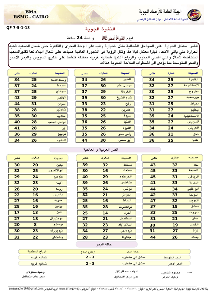 حالة الطقس ليوم الاربعاء 15/8/2015 على مصر والدول العربية والعالمية