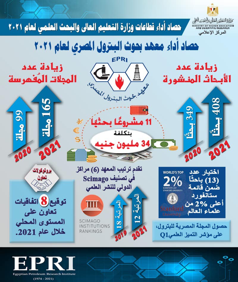 حصاد أداء قطاعات وزارة التعليم العالي والبحث العلمي لعام 2021وزير التعليم العالي يستعرض حصاد أداء معهد بحوث البترول المصري لعام 2021