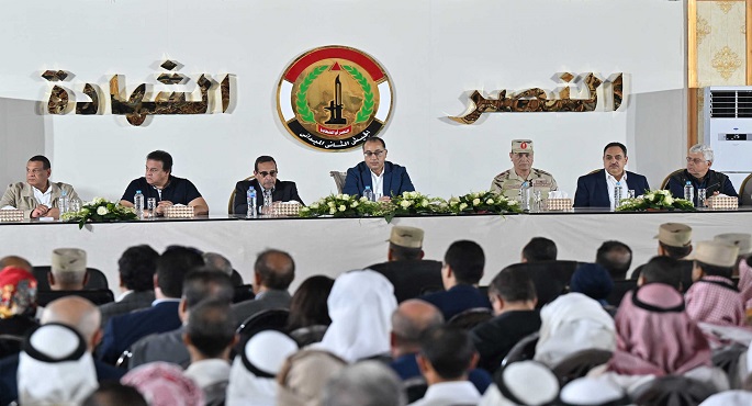 خلال لقائه مشايخ وعواقل شمال سيناء .. مدبولي: أرواحنا جميعا نحن المصريين فداء لكل ذرة رمل من أرض سيناء