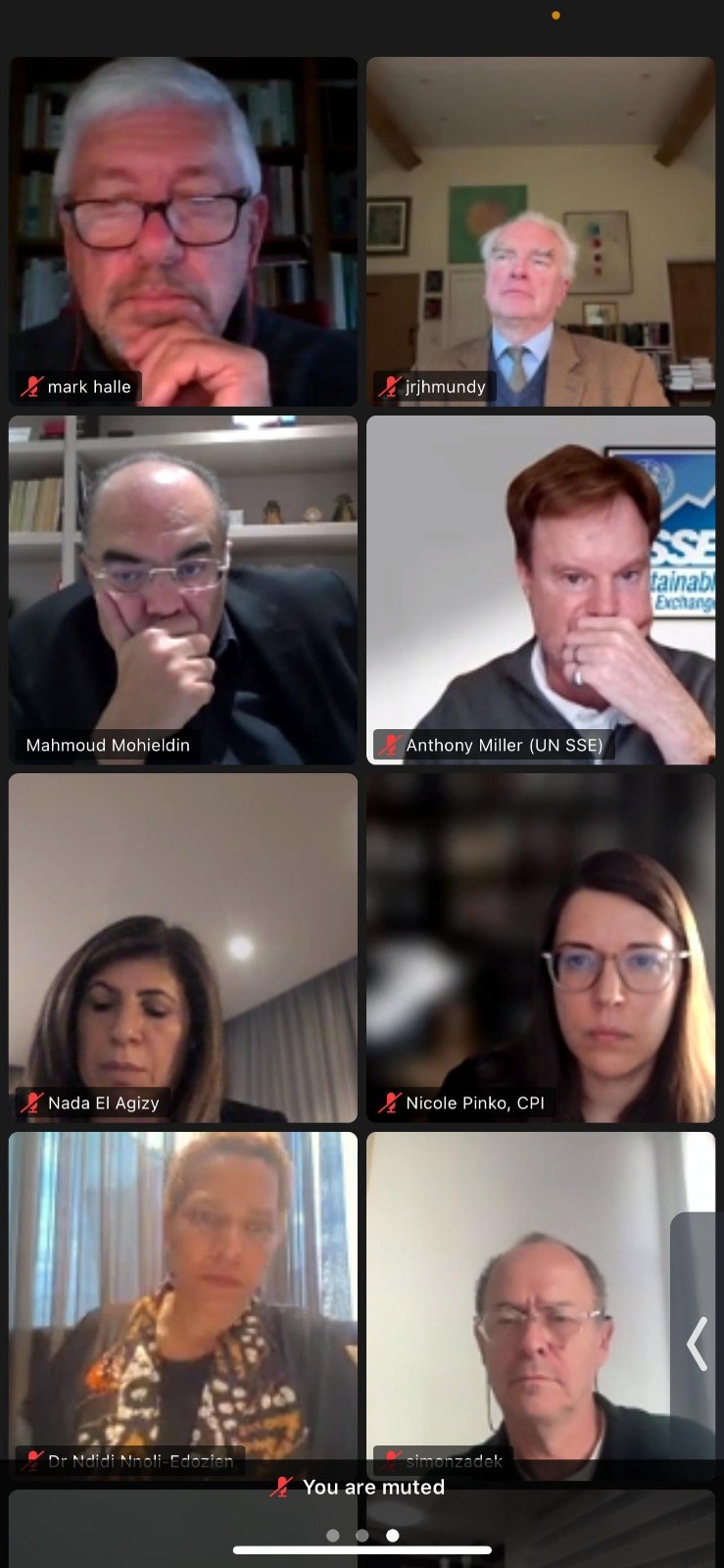 بالإضافة إلي سونيا جيبس، المديرة التنفيذية ورئيسة التمويل المُستدام بمبادرات السياسة العالمية لمعهد التمويل الدولي، وسيمون زادك، رئيس تمويل التنوع البيولوجي ومستشار أول مبادرة TNFD، وعبيد الزعابي، الرئيس التنفيذي للهيئة العربية للتنمية والإنماء الزراعي AAAID، وعلاء الزهيري، رئيس مجلس إدارة الاتحاد المصري للتأمين، وفيرا سونجوي، الرئيسة المشاركة لفريق الخبراء المستقل رفيع المستوى المعني بتمويل المناخ، ومارك هارلي، كبير مستشاري الشبكة الدولية للمراكز المالية من أجل الاستدامة، ومحمد نصر، سفير مصر بالنمسا ومدير إدارة المناخ والبيئة بوزارة الخارجية المصرية، ومي أبو النجا، وكيلو محافظ البنك المركزي المصري للرقابة والإشراف على البنوك، وندى العجيزي، الوزيرة المفوضة ومديرة إدارة التنمية المستدامة والتعاون الدولي بجامعة الدول العربية، ونديدي نولي إدوزين، رئيسة شراكة الابتكار في الاقتصاد الدائري والشريك الإداري Afrikairos GmBH.