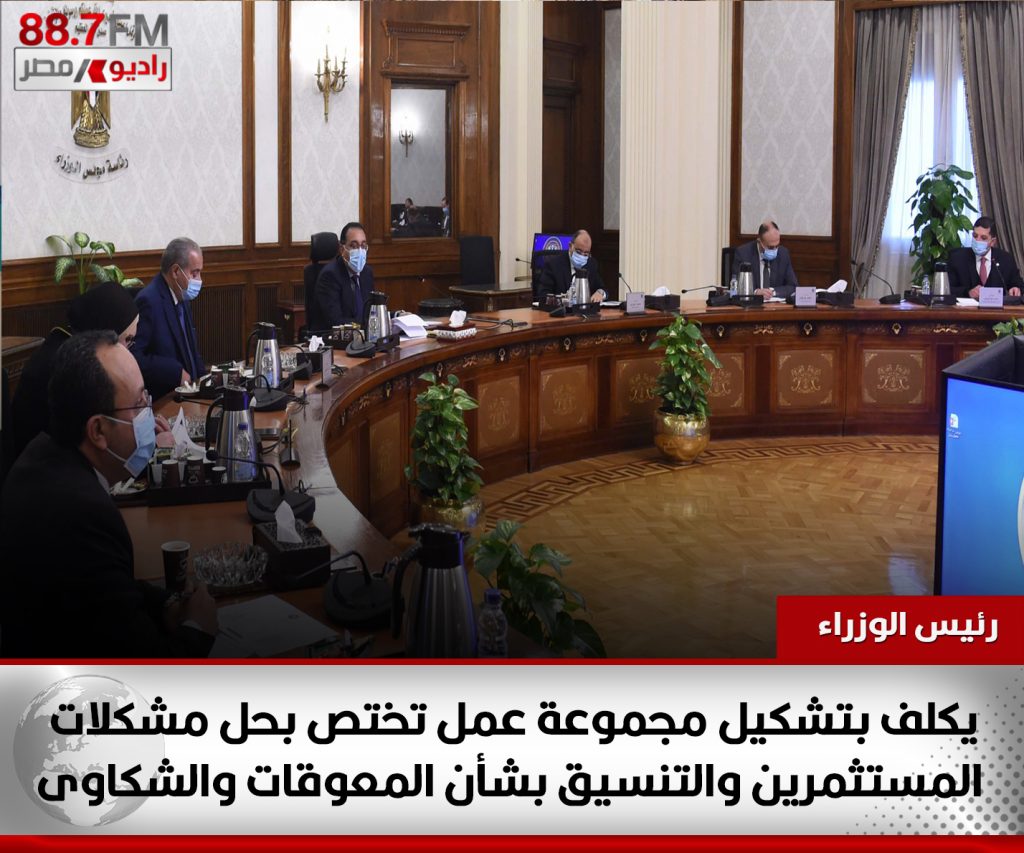 مدبولى يكلف بتشكيل مجموعة عمل تختص بحل مشكلات المستثمرين والتنسيق بشأن المعوقات والشكاوى المختلفةعقد الدكتور مصطفى مدبولي، رئيس مجلس الوزراء، اجتماعاً، اليوم؛ لمتابعة الجهود المبذولة للتغلب على معوقات الاستثمار فيما يتعلق بتخصيص الأراضى للمستثمرين،