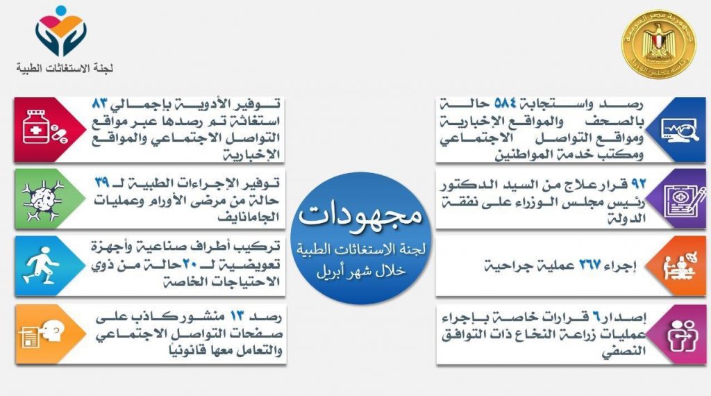 رئيس الوزراء يتابع جهود لجنة الاستغاثات الطبية بمجلس الوزراء في شهر أبريل الماضي