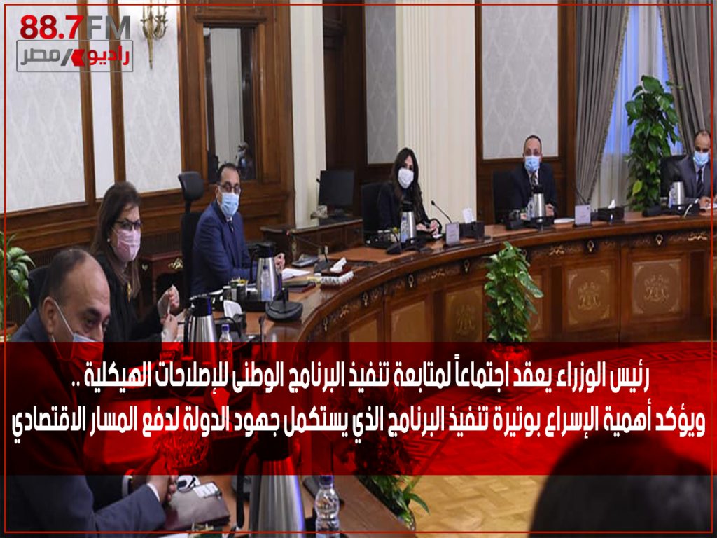 رئيس الوزراء يعقد اجتماعاً لمتابعة تنفيذ البرنامج الوطنى للإصلاحات الهيكلية .. ويؤكد أهمية الإسراع بوتيرة تنفيذ البرنامج الذي يستكمل جهود الدولة لدفع المسار الاقتصادي