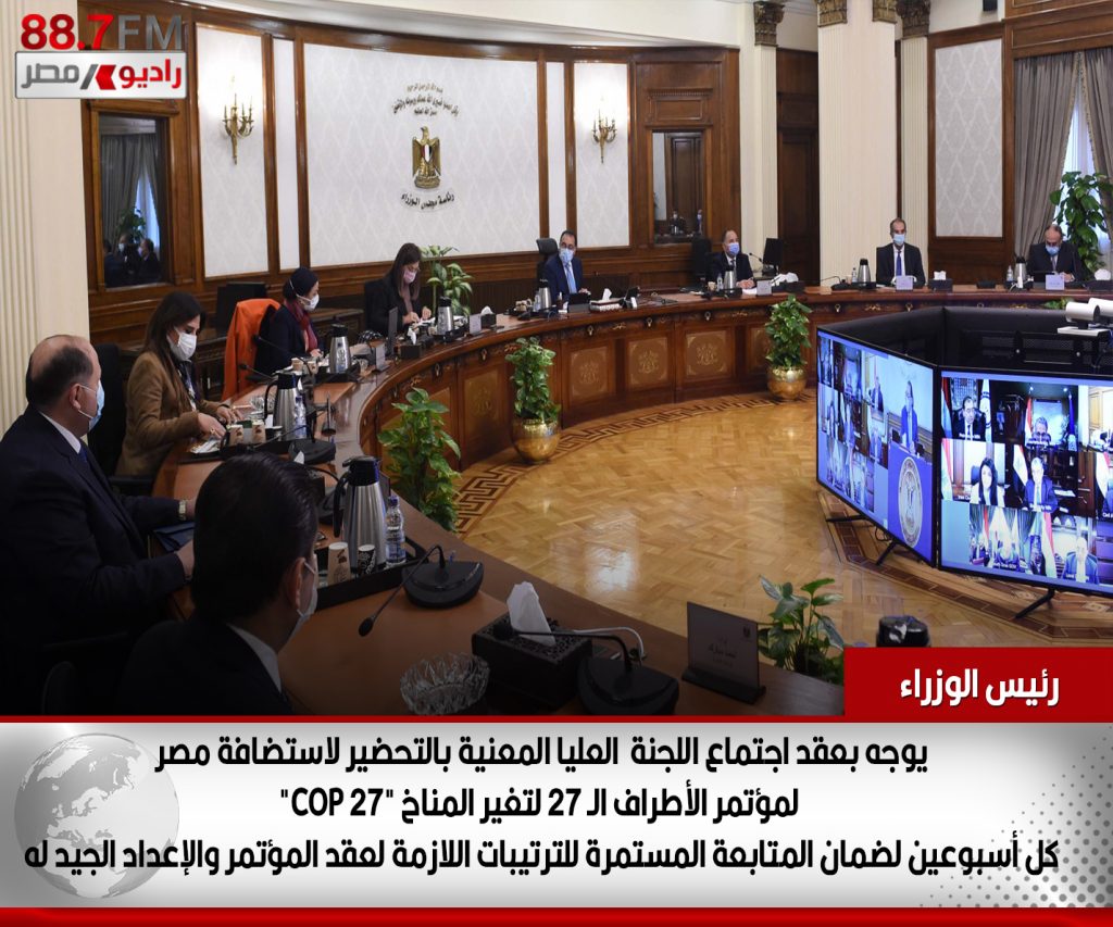 رئيس الوزراء : يوجه بعقد اجتماع اللجنة العليا المعنية بالتحضير لاستضافة مصر لمؤتمر الأطراف الـ 27 لتغير المناخ “COP 27″كل أسبوعين لضمان المتابعة المستمرة للترتيبات اللازمة لعقد المؤتمر والإعداد الجيد لهللمزيد:
