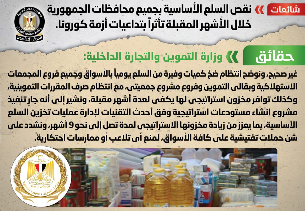 شائعة: نقص السلع الأساسية بجميع محافظات الجمهورية خلال الأشهر المقبلة تأثراً بتداعيات أزمة كورونا