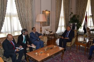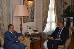 التقى سامح شكري وزير الخارجية في 18 يوليو الجاري، مع مبعوث الأمم المتحدة إلى اليمن/ إسماعيل ولد الشيخ أحمد، وذلك في إطار زيارته الحالية للقاهرة، حيث تم بحث آخر التطورات والمستجدات على الساحة اليمنية، والجهود المبذولة للتوصل إلى حل للأزمة الراهنة.