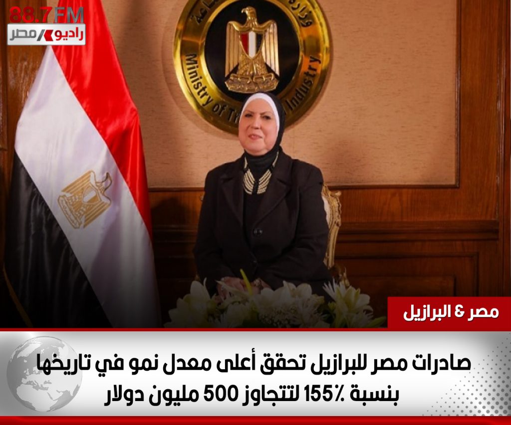 كشفت نيفين جامع وزيرة التجارة والصناعة عن تحقيق صادرات مصر السلعية إلى البرازيل أعلى معدل نمو في تاريخها بنسبة 155.4% خلال 2021، لتبلغ 542 مليون دولار مقابل 212 مليون دولار خلال عام 2020.