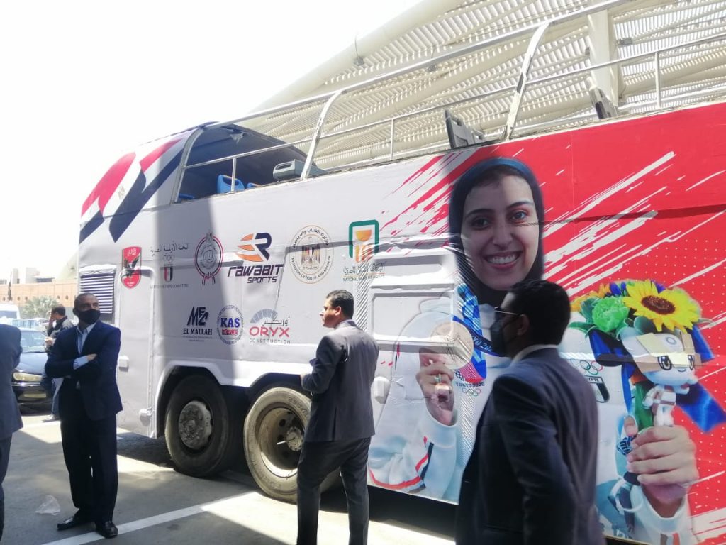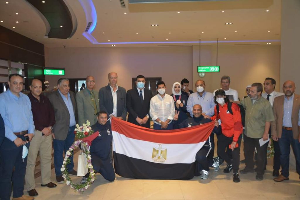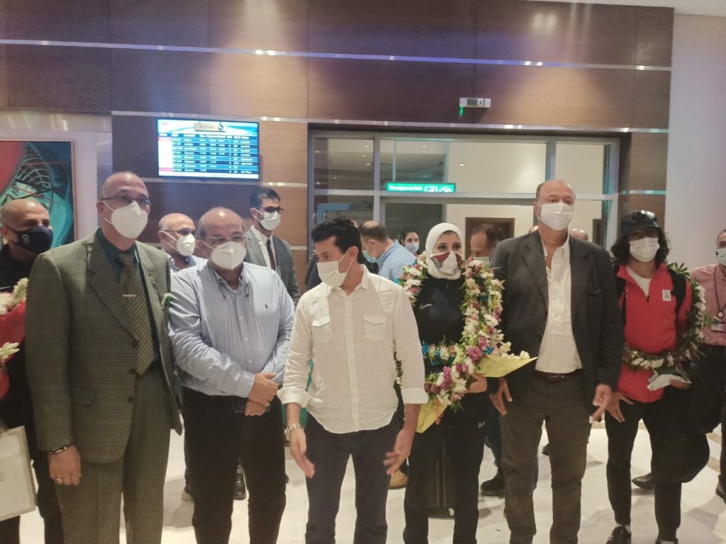 عادت #البعثة_الأولمبية_المصرية اليوم /الثلاثاء/ قادمة من طوكيو، بعد مشاركته في أولمبياد (طوكيو 2020)، إلى مطار القاهرة الدولي، على متن طائرة اقلت وزير الشباب والرياضة الدكتور أشرف صبحي، ورئيس اللجنة الأولمبية المصرية المهندس هشام حطب، برفقة بطلة الكاراتيه الأولمبية جيانا فاروق، والبطل الأوليمبي علي الصاوي.