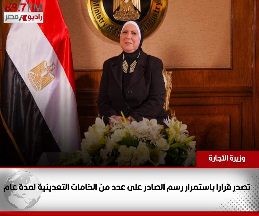 أصدرت نيفين جامع، وزيرة التجارة والصناعة قراراً باستمرار رسم الصادر المفروض على عدد من الخامات التعدينية، وذلك لمدة عام اعتباراً من يوم 9 فبراير 2022 على ألا يسري هذا الرسم على الرسائل المصدرة إلى المشروعات الإنتاجية المقامة في المناطق الحرة داخل مصر وفي حدود الكميات التي توافق عليها الهيئة العامة للاستثمار والمناطق الحرة.