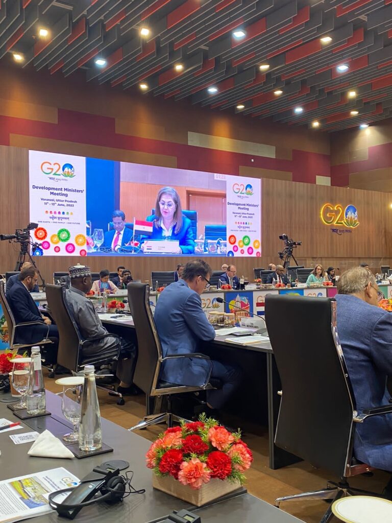 شاركت د.هالة السعيد وزيرة التخطيط والتنمية الاقتصادية اليوم بجلسة بعنوان الإجراءات الجماعية التعددية لتسريع التقدم نحو أهداف التنمية المستدامة والمنعقدة خلال اجتماع وزراء الخارجية والتنمية ضمن أعمال مجموعة العشرين بالهند في الفترة بين 11 إلى 13 يونيو الجاري، بحضور وزراء دول مجموعة العشرين.
