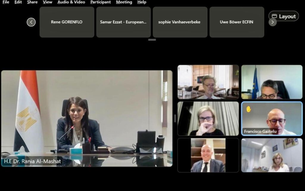 في إطار متابعتها لجهود تعزيز الشراكة مع الاتحاد الأوروبي على المستوى الاقتصادي، عقدت الدكتورة رانيا المشاط، وزيرة التخطيط والتنمية الاقتصادية والتعاون الدولي، اجتماعًا عبر تقنية الفيديو، مع مسئولي الاتحاد الأوروبي، مناقشة الموقف التنفيذي للمرحلة الأولى من آلية مساندة الاقتصاد الكلي ودعم عجز الموازنة MFA، والتي بموجبها يتيح الاتحاد الأوروبي تمويلًا ميسرًا بقيمة مليار يورو لمساندة تنفيذ الإصلاحات الهيكلية المحفزة للقطاع الخاص في مصر، وذلك بمشاركة وزارة الخارجية والهجرة وشئون المصريين في الخارج.