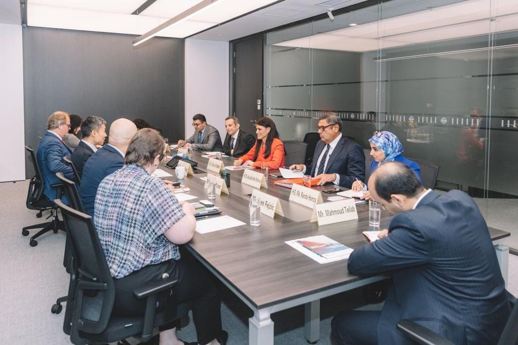 وخلال الاجتماع تم التأكيد على رغبة الجانبين في دفع التعاون المشترك لاسيما في مجال تقديم منح تنفيذ دراسات الجدوى ورفع القدرات وتنمية المهارات والتدريب، بالإضافة إلى تبادل الخبرات في ضوء التعاون جنوب جنوب والتعاون الثلاثي، حيث أكدت وزيرة التعاون الدولي حرص الحكومة على التعاون بشكل أكبر مع مركز التعاون متعدد الأطراف لتمويل التنمية، لاسيما فيما يتعلق بالدعم الفني لتنفيذ مشروعات المنصة الوطنية للمشروعات الخضراء برنامج «نُوَفِّي» محور الارتباط بين مشروعات المياه والغذاء والطاقة.