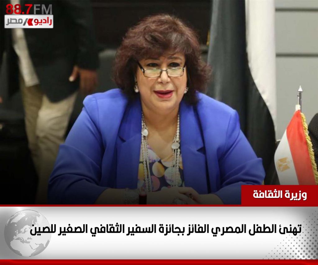 * وزيرة الثقافة تهنئ الطفل المصري الفائز بجائزة السفير الثقافي الصغير للصين .