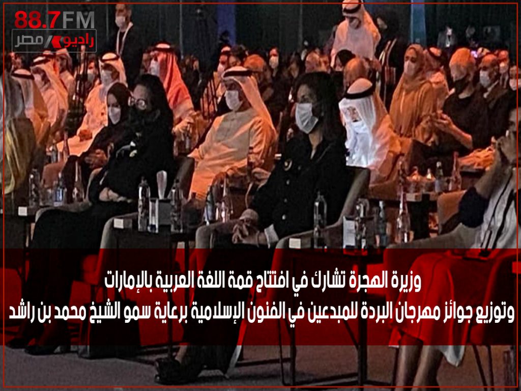 وزيرة الهجرة تشارك في افتتاح قمة اللغة العربية بالإمارات وتوزيع جوائز مهرجان البردة للمبدعين في الفنون الإسلامية برعاية سمو الشيخ محمد بن راشد