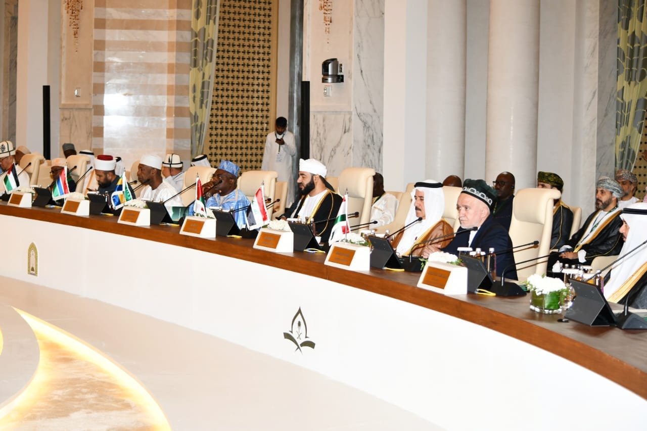 ووجه رسالة في نهاية كلمته قائلا:” من بلد الله الأمين من مكة المكرمة ينطلق صوتنا جميعًا معتصمين بحبل الله مؤتلفين مجتمعين، كلمتنا واحدة في تقديم الهداية والإرشاد والعلم والأخلاق والرحمة وفي تقديم مقاصد الشريعة لكل دولنا وأوطاننا وشعوبنا بما يجمع القلوب ويحقن الدماء ويطفئ نيران العنف ويعيننا على مواجهة تحديات العصر وحمل مواريث النبوة ثم لتقديم الإسلام للعالمين دين الحق والهدى والخير والعلم واحترام الأكوان وإكرام الإنسان وحفظ الأوطان وزيادة العمران وازدياد الإيمان، سائلًا الله تعالى أن يكتب للمؤتمر كمال السداد والتوفيق وأن يكتب لبلادنا كمال الحفظ والأمان والرعاية.