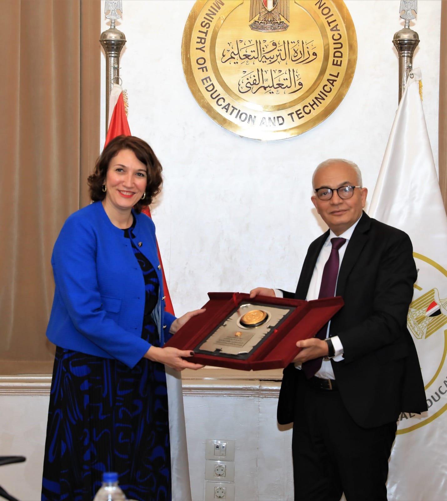 التقى الدكتور رضا حجازي وزير التربية والتعليم والتعليم الفني بتمارا راستوفاك سياماشفيلي رئيس المجلس التنفيذي لليونسكو؛ لمناقشة المشروعات التعليمية التي يتم تنفيذها بالتعاون مع المنظمة.
