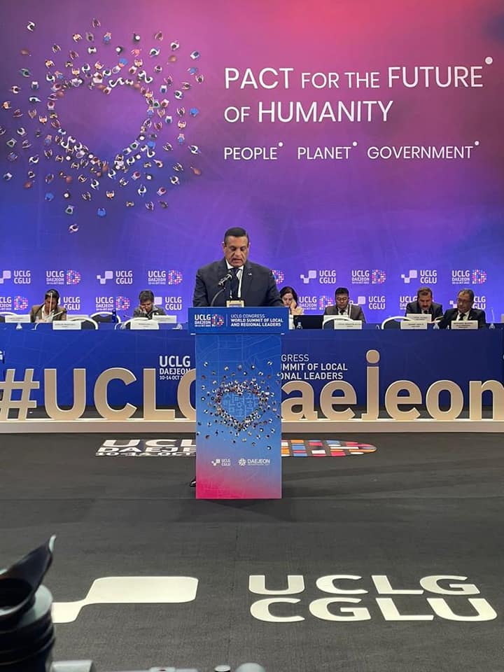 شارك اللواء هشام آمنة وزير التنمية المحلية، اليوم الخميس في المائدة المستديرة رفيعة المستوى حول ” تحويل علاقتنا مع الطبيعة وأنظمتنا البيئية: مستقبل الكوكب ” وذلك على هامش أعمال مؤتمر قمة المدن والحكومات المحلية العالمية في دورتها السابعة بمدينة دايجون بكوريا الجنوبية بحضور عدداً من قيادات منظومة المدن والحكومات العالمية والأفريقية ومجموعة من المحافظين والعمداء ورؤساء الولايات من مختلف دول العالم وقيادات وزارة التنمية المحلية .