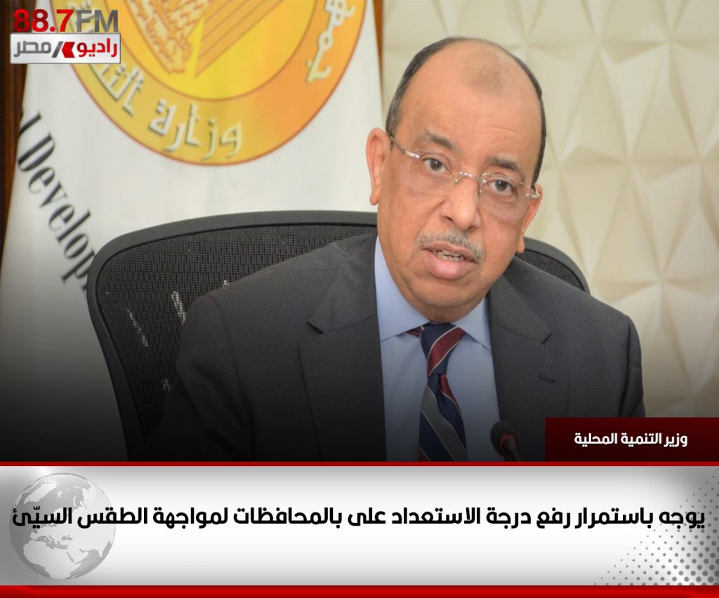 وجه محمود شعراوى وزير التنمية المحلية باستمرار رفع درجة الاستعداد على بالمحافظات لمجابهة الطقس السيّئ، و استمرار عمل غرفة العمليات وإدارة الأزمات بالوزارة لمتابعة تطورات الوضع بالمحافظات على مدار الساعة و سرعة التعامل مع أية أحداث طارئة بالتنسيق مع غرفة العمليات المركزية بمجلس الوزراء.. مشيرا إلى تواجد رؤساء الأحياء والمدن والمراكز ميدانياً ومتابعة أعمال شفط مياه الأمطار فى المحافظات التى سقطت فيها الأمطار سواء من الشوارع الرئيسية أو الفرعية.