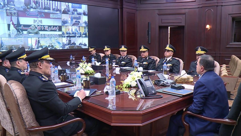 عقد اللواء محمود توفيق وزير الداخلية، اجتماعاً مع عدد من مساعدى الوزير والقيادات الأمنية، بمقر مركز المعلومات وإدارة الأزمات بوزارة الداخلية، وبحضور جميع مديرى الأمن وقيادات الأجهزة الأمنية، بمواقعها عبر (الفيديو كونفرانس) ، وذلك لبحث استراتيجية العمل الأمنى فى المرحلة الحالية، واستعراض محاور الخطة الأمنية لتأمين احتفالات الأخوة الأقباط والعام الميلادى الجديد. فى بداية الإجتماع أكد وزير الداخلية أن أجهزة وزارة الداخلية لن تتوانى فى إتخاذ إجراءاتها لحماية أمن البلاد وإستقرارها وأن أى محاولات إرهابية لن تنال من عزيمتنا لتحقيق رسالتنا، وأشاد بالجهود الأمنية التى بذلت خلال الفترة الماضية ، والتى أدت إلى تحقيق العديد من النجاحات والإنجازات وساهمت فى إستقرار الشارع المصرى وإستعادة البلاد لمسيرتها التنموية ، مؤكداً أن حجم النجاحات الأمنية التى تحققت خلال الفترة الحالية يجب الحفاظ عليها والعمل على زيادة معدلاتها . وتابع الوزير عبر (الفيديو كونفرانس) مع القيادات الأمنية بمختلف مديريات الأمن إستعدادات الأجهزة الأمنية لتأمين المواطنين خلال فترة الإحتفالات وخطط إنتشار القوات بالعديد من المحاور الرئيسية ودور العبادة والمنشآت الهامة والحيوية والمقاصد السياحية على مستوى الجمهورية، مشددا على إتخاذ أعلى درجات الحذر واليقظة ومضاعفة الجهود المبذولة وتفعيل جميع الإجراءات والتدابير اللازمة لتأمين تلك المنشآت ، وإتخاذ كافة الإجراءات لإحكام الرقابة والسيطرة الأمنية على الطرق المحيطة والمؤدية إليها .. لافتاً إلى أهمية تحلى القوات بالجاهزية التامة والكفاءة العالية ، ونشر الدوريات الأمنية وخدمات المرور والنجدة وتعزيز الأكمنة بما يمكنها من التعامل مع مختلف المواقف الطارئة والمحتملة. كما شدد على إستمرار ومواصلة جهود الأجهزة الأمنية فى الضربات الإستباقية للعناصر والتنظيمات الإرهابية وإستهداف البؤر الإجرامية والتشكيلات العصابية وضبط عناصرها بجميع محافظات الجمهورية وتنفيذ الأحكام القضائية ، مع مواصلة الجهود الأمنية لتنفيذ كافة قرارات إزالة التعديات على أراضى وأملاك الدولة بلا تهاون وبالتنسيق الكامل مع الأجهزة الإدارية بالمحافظات . ووجه وزير الداخلية التواجد الميدانى لكافة المستويات الإشرافية والقيادية ، لمتابعة سير الأداء الأمنى وتنفيذ الخطط الأمنية بكل دقة وجدية، مشدداً على الإلتزام بحسن معاملة المواطنين ومراعاة البعد الإنسانى لدى التعامل مع الجماهير أثناء تنفيذ الخطط والإجراءات الأمنية، مؤكداً على أهمية إستمرار تفعيل مسارات التواصل مع المواطنين بما يضمن تفاعلهم الإيجابى لتحقيق رسالة الأمن . وفى نهاية الإجتماع أعرب وزير الداخلية عن ثقته فى تنفيذ رجال الشرطة لعناصر الخطة الأمنية التى وضعتها الوزارة لتأمين المواطنين.. مؤكداً أن وزارة الداخلية لن تسمح بأى ممارسات من شأنها الخروج على القانون ، ولن تتوانى فى التعامل بمنتهى الحزم والحسم مع كل من تسول له نفسه المساس بأمن وسلامة المواطنين ، وكل من يحاول المساس بإستقرار الوطن .