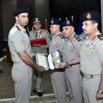 وأهدي عدد من الخريجين درع الدورات الدراسية لكلية القادة والأركان إلى القائد العام للقوات المسلحة .