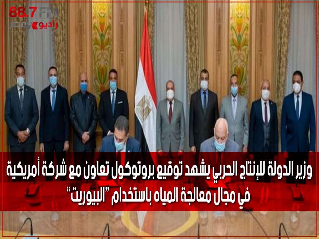 وزير الدولة للإنتاج الحربي يشهد توقيع بروتوكول تعاون مع شركة أمريكية في مجال معالجة المياه باستخدام “البيوريت”