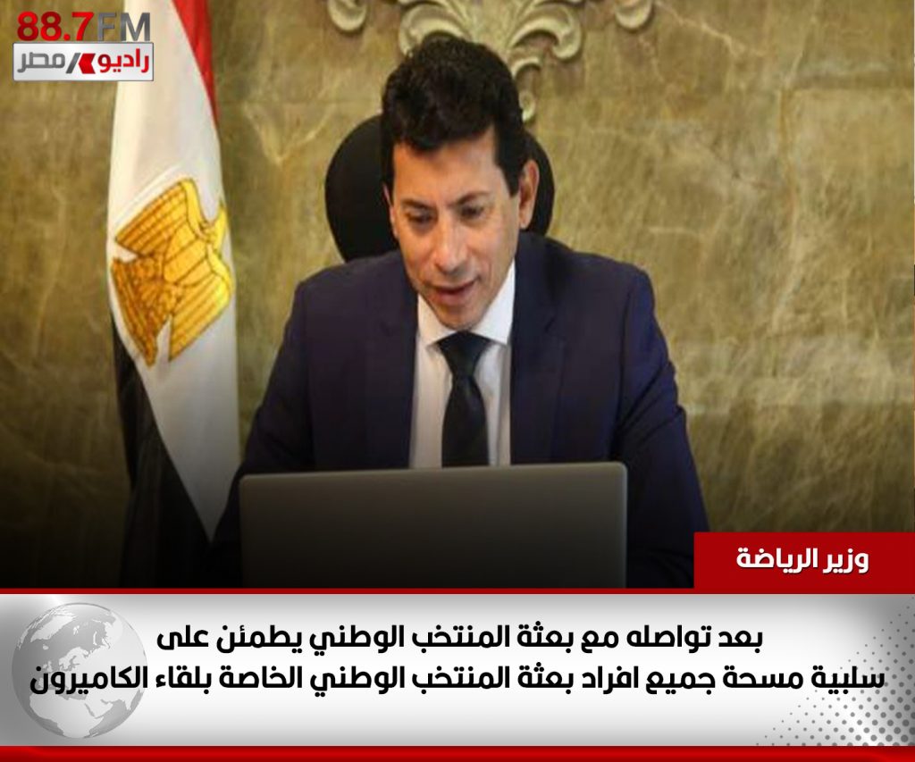 وزير الرياضة بعد تواصله مع بعثة المنتخب الوطني يطمئن على سلبية مسحة جميع افراد بعثة المنتخب الوطني الخاصة بلقاء الكاميرون