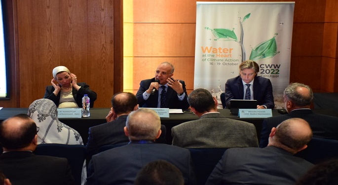 ويعقد أسبوع القاهرة الخامس للمياه تحت شعار “المياه في قلب العمل المناخي” بهدف مناقشة آثار التغيرات المناخية على قطاع المياه، حيث تناقش فعاليات الأسبوع هذا العام التحديات المناخية وتأثيرها على قطاع المياه ليكون بمثابة حدثا تحضيريا لفعاليات المياه خلال مؤتمر المناخ القادم (COP27).